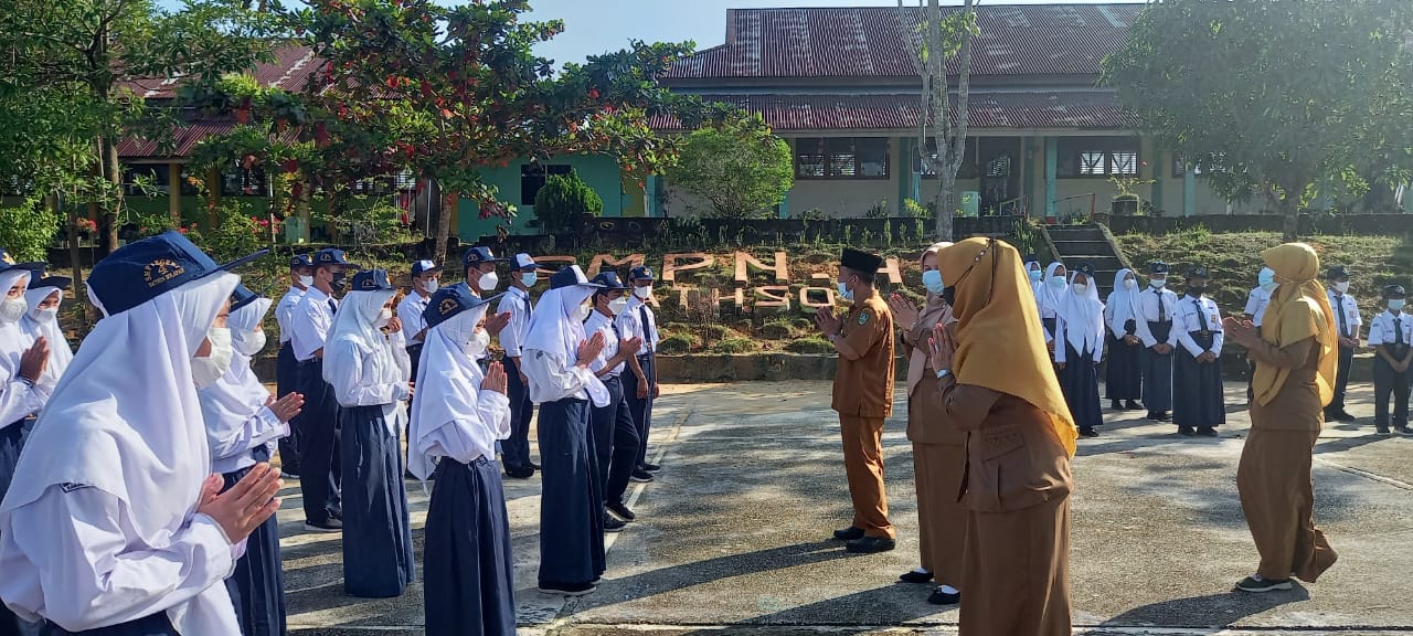 Hari istimewa itu akhirnya datang, pembelajaran tatap muka terbatas mulai dilaksanakan. Setelah masa pemberlakukan PSBB berakhir, kita memasuki tatanan kehidupan yang baru pada masa pandemi Covid-19 yaitu “era new normal”. Istilah new normal merupakan tatanan kehidupan normal yang baru dengan membiasakan perilaku hidup bersih dan sehat. Pembelajaran tatap muka terbatas mulai dilaksanakan pada 7 September 2021 di SMPN 4 Bathin Solapan sampai hari ini.